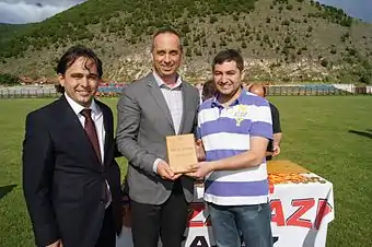Chairman Mr. Bujar Ahmedi giving a Gratitude to the Mayor of Kërçova, Mr.Fatmir Dehari