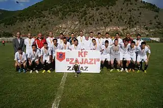 KF Zajazi (Macedonian: ФК Зајас, English: FC Zajas) is a football club based in the village of Zajaz, Kičevo, North Macedonia. They are currently competing in the Macedonian Third League (West Division). KF Zajazi was founded in 1979. The club's major success was achieved in the season 2012–13 when they won the Macedonian Third League  – West. Then in the play off game they faced FK Babi Stip which they won 1–0 and got promoted to the Macedonian Second League for the first time in their history.