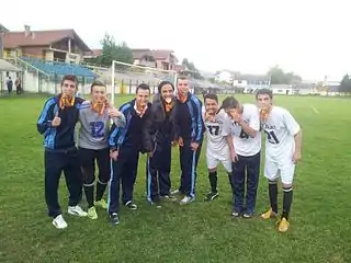 But there were still a lot of financial difficulties which the new appointed chairman, Bujar Ahmedi, managed to settle in a very short period of time. With all these new changes, now, KF Zajazi from an outsider managed to being named by experts as the main favorite for winning the Macedonian Third League – West and gaining promotion to the Macedonian Second Football League. Their biggest rivals were thought to be, again, their city rivals FK Vlazrimi. But this time it was a different story from the one 11 years ago, as KF Zajazi beat their rivals in an away match in the 4th round, thus gaining a clear 6 points advantage. This advantage soon increased, as KF Zajazi emerged absolute favorites of winning the league. Kf Zajazi created a big advantage towards the other teams and managed to lift the Trophy very early in the season, with a lot of games remaining.