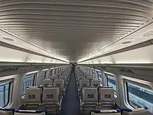 Unlike KTX trains, the seats on KTX-Eum feature more leg room, wider armrests, USB ports, wireless charging pads, and entertainment displays similar to inflight entertainment systems found on aircraft.[4][7][15][8][9] In addition, every seat is aligned with the window.[4][7][15][8][9]
