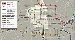 - ↑ "Measure R Project Delivery Committee Hollywood/West Hollywood Transit Corridor Connection To Crenshaw/LAX Transit Corridor Initial Review" (PDF). Metro (LACMTA). November 18, 2010. Archived from the original (PDF) on June 29, 2011. Retrieved January 23, 2014.