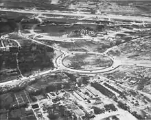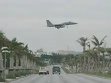 The Kadena area has some of the oldest settlement remains, in the form of shell mounds, on Okinawa Island.[4] The Hija River, the modern border between Yomitan and Kadena, was the focus of these early settlements.[4] A number of ruins of minor gusuku (castles and forts) can be found in the area.[4] Amawari, an infamous warlord, was born in the Kadena area while it was still part of Chatan.[4] Japan annexed the island in 1879, and Chatan became a village in 1908. During the Pacific War, Japan built an airstrip in the Kadena area. During the Battle of Okinawa in 1945, the United States landed on the banks of the Hija River and captured the airstrip. The airstrip became Kadena Air Force Base. On December 4, 1948, the American military government separated Kadena from Chatan and established Kadena village.[4] The United States built Kadena Circle outside the base. On January 1, 1976, four years after Okinawa reverted to Japanese control, Kadena was elevated to town status.[4]