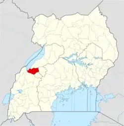 The district is bordered by Ntoroko District to the west, Hoima District to the north, Kibaale District to the east, and Kyenjojo District to the south.[3] The town of Kagadi, where the district headquarters are located, is approximately 250 kilometres (155 mi) north-west of Kampala, the capital city of Uganda.[4] This is about 92 kilometres (57 mi) south-west of Hoima, the nearest large city.[5]