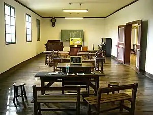 The Kaichi School (旧開智学校, kyūkaichi-gakkō) in Matsumoto, Nagano Prefecture was one of the first schools in Japan. It opened in a temporary building in May 1873, the year after the first major education reforms were introduced by the new Ministry of Education. The school moved to new premises in April 1876. This western-style building, fused with Japanese elements, was designated an Important Cultural Property in 1961. Relocated two years later during work on the nearby Metoba River, in 1965 the old school building was turned into an education museum.[1][2][3]