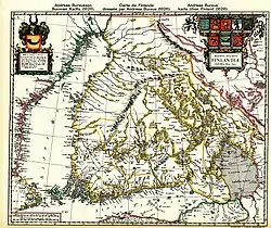 In the turn of the 16th century, there were no fast settlements or villages in Kainuu. However, the Kainuu wilds were still used by few nomadic Sámi, as well as Ostrobothnians and Karelians, to fish and hunt.[4] Savonians started moving to Kainuu in the 1550s, encouraged by the Swedish king Gustav Vasa. They practised slash-and-burn agriculture. Since the Treaty of Nöteborg in 1323, the area had belonged to Russia, and the Swedish rulers wanted to increase the Finnish presence in the area for political reasons.[8] In the coming decades, Russians tried to get rid of the Swedish settlements that had spread to their lands by raiding and destroying Kainuu villages and murdering the men, women and children.[9] This period, which was a part of a larger border conflict between Sweden and Russia, is known to Kainuu people as rappasodat (pillaging wars),[4] during which the Finns of North Ostrobothnia and Kainuu and the Karelians of White Karelia practised guerrilla warfare against each other. After the Russo-Swedish War of 1590–1595, in the Treaty of Teusina in 1595, Kainuu was made a part of the Kingdom of Sweden,[10][2] ending the border conflict. Many Savonian families were again encouraged or forced by the order of the king to move to Kainuu. By the end of the century, Paltaniemi had become the center of the rural municipality.[4]