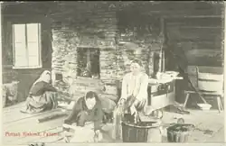 In the 19th century, the tar industry became incredibly important for the people of Kainuu, as Kainuu was the center of the industry in Finland.[12] Although a bit of Kainuu folk poetry had already been collected in the 18th century, the popularity of national romanticism in the 19th century brought further attention to Kainuu. This included collecting folk poetry of pagan origin that had survived in oral tradition, such as spells[13] and tales involving mythological figures like Väinämöinen and Lemminkäinen.[14] At the turn of the 20th century, the region was made known by Kainuu author Ilmari Kianto and poet Eino Leino, who is considered a national poet of Finland. Kainuu came to be known as the land of tar, bark bread and hunger. At the same time, the Kainuu identity was forming,[4] and the word "Kainuu" became the primary word to refer to the region.