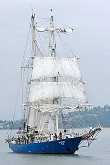 The STS Kaisei (海星), meaning “Sea Star” in the Japanese language, is a steel-hulled brigantine designed by Polish naval architect Ryszard Langer. It was built as Schooner in Elbląg, Poland in 1987. After re-rigging it is now a two-masted vessel, square rigged on the foremast, with fore-and-aft sails on the mainmast.