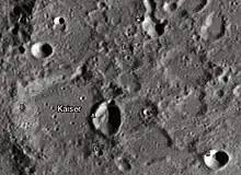 Kaiser is a lunar impact crater. It lies in the crater-riddled terrain in the southern part of the Moon's near side. It was named after the Dutch astronomer Frederik Kaiser.[1] The crater is nearly attached to the northeast rim the slightly larger crater Fernelius, and the two are separated by an irregular patch of ground only a few kilometers wide. To the northwest of Kaiser lies Nonius, a crater remnant.