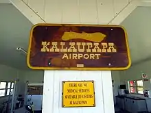 Kalaupapa Airport (IATA: LUP, ICAO: PHLU, FAA LID: LUP) is a regional public use airport of the state of Hawaii, located on the northern peninsula of the island of Molokaʻi, two nautical miles (2.3 mi; 3.7 km) north of Kalaupapa Settlement, in Kalawao County.[1] Most flights to Kalaupapa originate from Molokai Airport or from airports on the other Hawaiian islands by unscheduled air taxis and general aviation. It is also used as a cargo facility carrying goods for Kalaupapa, which has no road access from the rest of Molokai.
