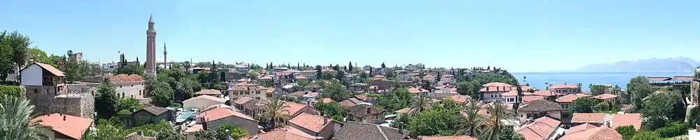 Kaleiçi is the historic city center of Antalya, Turkey. Until modern times, almost the entire city was confined within its walls. It has structures dating from the Roman, Byzantine, Seljuk, Ottoman and modern Turkish republican eras. Most of it however, dates to the late 18th and 19th centuries. While some of the traditional Turkish homes are occupied by residents, many have been converted into boutique hotels, restaurants and shops selling handicrafts and other folkloric arts. The area has been undergoing to an extensive restoration by the municipality of Antalya.
