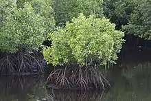 After his split with the party, Pokkudan spent his time in environmental protection activities, focusing on the protection of the mangrove forests of Kerala.[5] He embarked on a mission to plant mangroves across the coastal waters of Kerala and is reported to have planted over one lakh (100,000) mangrove plants in the state.[6] He founded the Mangrove School and conducted over 500 classes in various parts of the state in an attempt to educate the masses about the ecological importance of mangroves.[7] His last work, Kandal Inangal (Mangrove Species) is a work detailing various species of mangroves found in Kerala.[5] Sthalam, a 2012 film by Siva Prasad, has been made on the life of Pokkudan.[8] He was one of the protagonists of Papilio Buddha, a 2013 feature film by Jayan Cherian, which focuses on the environmental and spiritual aspects of life.[9]