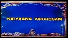 Kalyana Vaibhogam (transl.Marriage celebration) is a 1997 Indian Tamil-language romance film directed by N. Rathnam, who had previously directed the film Chellakannu (1995). The film stars Ramki, Khushbu and Sangita, with Vadivelu, R. Sundarrajan, V. K. Ramasamy, Vennira Aadai Moorthy, Vijay Krishnaraj and Haja Shareef playing supporting roles. It was released on 5 September 1997.[1] The film was a remake of the Hindi film Aaina (1993).[2]