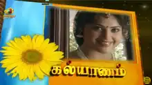 Kalyanam (transl.Wedding) is a 2009 Indian Tamil-language soap opera that was aired on Sun TV. The show premiered on 2 March 2009 to 7 August 2009 at 7:30PM IST for 110 episodes. The show stars Meena, Yuvarani, Saakshi Siva, Delhi Kumar and Shanthi Williams.