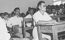 Kamejiro Senaga (瀬長 亀次郎, Senaga Kamejirō) (June 10, 1907 – October 5, 2001) was a politician, journalist, also Mayor of Naha city. Senaga was an outspoken critic of American oppression on Okinawa and was imprisoned by American military authorities for sheltering Communists. He was a mayor in Naha and a prominent political figure during the American occupation of Okinawa. However, he was removed when military authorities arbitrarily changed Okinawan election ordinances. Senaga was a strong advocate for the reversion of Okinawa, which was initially opposed by the American military. Later, he served as a representative of the Japanese Communist Party in the Diet, in the House of Representatives, before retiring from politics in 1990.