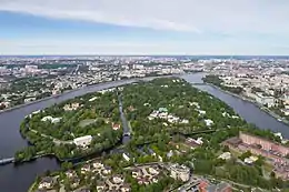 Krestovsky Island (Russian: Крестовский остров) is the westernmost and largest island. It is the location of the Kamenny Island Palace.[5]