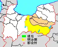 Map showing original extent of Kaminiikawa District in Toyama Prefecture: