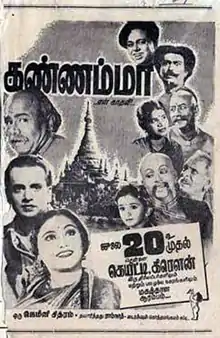 Kannamma En Kadhali (transl. Kannamma is my lover) is a 1945 Indian Tamil-language film starring M. K. Radha and M. S. Sundari Bai.[2] The film was directed by Kothamangalam Subbu, marking his directorial debut.[3] No print of the film is known to survive, making it a lost film.[4]