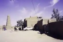 To the right a wall of the former palace of Kaocen Ag Geda, in 1991 Hôtel de l'Air, Agadez, Niger.
