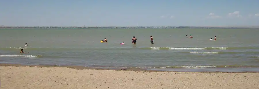 The reservoir has had a major impact upon fish populations, especially given that commercial fishing operations have been practiced in the reservoir, fuelling the local economy. In 1975, 24 species of fish were recorded in Kapchagay Reservoir, but in 1980 this had fallen to 18, directly affecting the industry.[3] However, between 1985 and 1991 as the river reached its current capacity, fish stocks in the lake stabilised and since 1980 there has been a marked growth in the fishing industry on the lake after its decline in the 1970s.[3] The reservoir has also been responsible for rising groundwater levels which has made it impossible to grow crops on land adjacent to the lake in many parts.[3] As a result, many agricultural villages in the area such as Akozek, Kerbulak and Chengildi are located several kilometres from the lake, rather than on its bank.