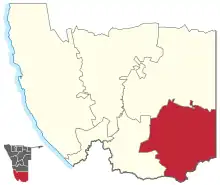 Karasburg East constituency (red) in the ǁKaras Region (yellow)