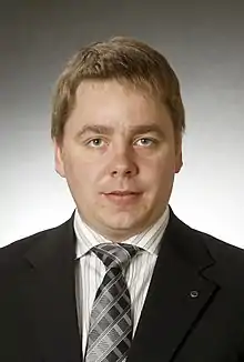 Karel Rüütli (born 25 December 1978, in Valga) was Chairman of the Estonian People's Union (Eestimaa Rahvaliit) and also leader of Estonian People's Union faction in the Estonian Parliament. He left the ERL and joined the Social Democratic Party of Estonia on 14 June 2010.