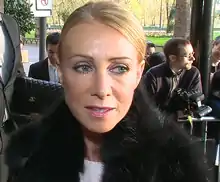 English fashion designer Karen Millen studied fashion at the Medway College of Design, now known as University for the Creative Arts.[1] She founded the Karen Millen company in 1981, partnered with Kevin Stanford. With a loan of £100, the pair bought one thousand metres of white cotton and began manufacturing and selling white shirts to their friends.[2] A party-plan network followed, and in 1983, they opened their first store in Maidstone, Kent, which was followed a few years later by branches in Tunbridge Wells, Brighton, Guildford and London.
