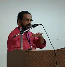 Karivellur Murali speaking at a literature camp in Mumbai, January 2018