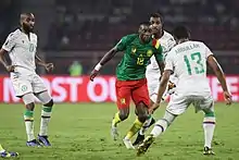 At the 2021 Africa Cup of Nations on home soil at the start of the following year, Toko Ekambi scored twice in a 4–1 group win over Ethiopia,[38] and the opening goal of a 2–1 win against Comoros in the last 16.[39] On 29 January, he scored both goals against the Gambia in the quarter-finals.[40] On 29 March 2022, he scored a goal in the fourth minute of time added on at the end of extra time against Algeria to send Cameroon to the 2022 FIFA World Cup.[41] At the finals in Qatar, he started the first two games and was a substitute in the 1–0 win over Brazil, as the team exited in the group stage.[42][43][44]