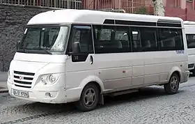 It is the successor of the Karsan J9 Premier that was based on the platform of the 1980s' Peugeot J9.[1] It is available in three capacity versions, with 14, 17 or 20 seats, and is powered by a 2.3-liter common rail engine from Iveco, developing 96 hp (71 kW) and 240 N⋅m (180 lb⋅ft). Two length options are available, 3.3 metres (10.8 ft) or 3.8 metres (12.5 ft), both with a GVWR between 4.1 and 4.3 tonnes. Standard equipment includes ABS, EBD, automatic rear doors, sunroof, electric windows, central locking and optional, air conditioning.[2][3]