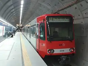 Kartäuserhof station is a station on Cologne Stadtbahn line 17. The station opened on 13 December 2015 with interim service on line 17. When the entire North-South Stadtbahn tunnel is complete, it is expected to be served by both lines 5 and 16.