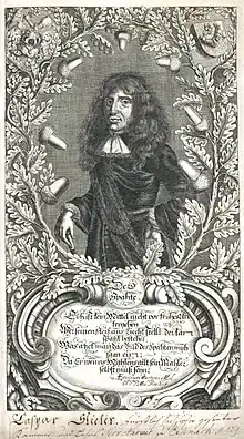 Portrait of Kaspar von Stieler. Engraving from his work Der Teutsche Advokat
