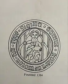 The school was founded by Katherine, Lady Berkeley for the use of six scholars in 1384 which makes it one of the oldest surviving schools in England.[2] It is known that schools existed in the area before then, but Lady Berkeley formalised this school, gaining it a royal licence and it became a model for other schools. It was founded before Eton, Harrow, and Westminster, and two years after Winchester.[3] The first headteacher appointed in 1384 was John Stone M.A. Oxon[4]