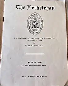 In January 1963, the school vacated the premises in Wotton and moved into a new building for 350 pupils in the Kingswood Road.[5] The erection of the first phase of extensions to the Kingswood Road buildings began in March 1972. The extensions were completed for the start of the Autumn Term 1973, when Katharine Lady Berkeley's re-opened as a comprehensive school for 830 pupils.[6] Wotton Secondary School closed at the end of August 1973.[5]