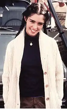 After her run on Dynasty, Beller starred in the TV thriller Deadly Messages, which Beller said differed from her earlier thrillers by "[not taking] itself too seriously".[6] In an interview, she explained her tendency to portray victims in films is encouraged by "the color and size of [her] big brown eyes", "the way [she interprets] roles" and "the episodic roles [she] did while [she] was growing up".[6] Her casting in the film was an unusual one: According to the actress, she received a call from her agent about a script, read it immediately, and drove to the studio an hour later, expecting a meeting. When she arrived, however, she was asked if she could start working right away.[1] She took the role because of "the whirlwind casting", and the fact that she had not worked for seven months, since a guest spot on Glitter.[1]