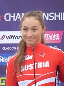 Kathrin Schweinberger (born 29 October 1996) is an Austrian racing cyclist, who currently rides for UCI Women's Continental Team Doltcini–Van Eyck–Proximus.[3] She rode in the women's road race event at the 2017 UCI Road World Championships.[4] Her twin sister Christina Schweinberger is also a professional cyclist for the Doltcini–Van Eyck–Proximus team.