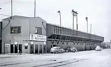 • In 1954, the park re-opened for baseball, having been completely rebuilt after the previous year's tornado. This photo shows the new grandstands.
