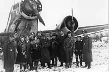 Norwegian soldiers with the wreck of a German aircraft at Kautokeino Airport in spring 1945