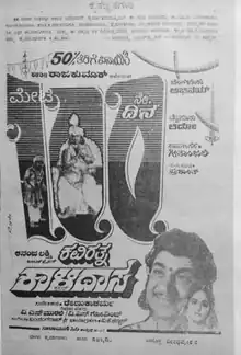 Kaviratna Kalidasa (transl. Poet Kalidasa) is a 1983 Kannada-language historical drama film based on the life of Kālidāsa, a renowned Classical Sanskrit writer of the 4th Century A.D. The film was written and directed by Renuka Sharma and produced by V. S. Govinda. The film stars Rajkumar, portraying the title role of Kalidasa, along with Jaya Pradha in the role of Vidyadhare and Srinivasa Murthy as Raja Bhoja.