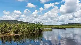 The Kaw-Roura Marshland Nature Reserve not only consists of marshland, but also contains mangrove forests, savannas, and tropical rainforests.[4] The reserve measures 94,700 hectares,[5] and is the largest wetland of France. It stretches from Roura to Régina, and from the Atlantic Ocean to the Amazonian rainforest. The marshland is fed by the Kaw River, the Approuague and the Angélique Creek.[6]