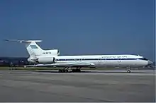 A Kazakhstan Airlines Tupolev Tu-154 at Zurich Airport (1994).