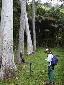 The arboretum lies alongside the Piinaau Stream on taro cultivation terraces and within a rainforest, and contains two short walking trails. It contains about 150 varieties of native and introduced tropical plants, including gingers, hibiscus, papaya, and various types of taro.[2][3] Trees are labeled with common name, scientific name, and origin.