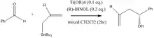 Although the groups of E. Tagliavini and K. Mikami reported the catalysis of this reaction using a Ti(IV)–BINOL complex in the same year as the Keck group,[7][8] Keck's publication reported higher enantio- and diastereoselectivity, and did not require the use of 4 Angstrom molecular sieves as in Mikami's procedure or an excess of BINOL as in Tagliavini's procedure.[9]