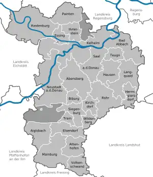 Kelheim is a Landkreis (district) in Bavaria, Germany, bound (from the north and clockwise) by the districts Regensburg, Landshut, Freising, Pfaffenhofen, Eichstätt and Neumarkt.