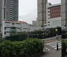 The Kowloon Bay campus welcomed its first cohort of Prep and Senior students in September 2013. The campus design was done by the P&T Group and won awards in 2016 including the International Property Awards title 'Best Public Service Architecture (Asia Pacific)' and the Asia Pacific Property Awards title as 'Best Public Service Architecture'.[12] The facilities included in the 45,000sqm footprint include a fully operational theatre, a CrossFit gym, swimming pool and Sky Pitch.[13] The Kowloon Bay campus has a swimming pool with six lanes that is located inside. It also has an auditorium and facilities for art and drama classes. Gardens were installed in the outside of the campus.[9]