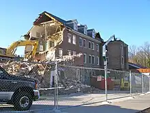Demolition of the Kelso Home building - view from existing fitness-center entry