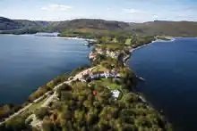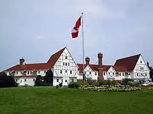 When Cabot Trail opened in 1932 tourists began coming to Cape Breton.[4] In 1936 Mrs. Corson sold her land to the Nova Scotia government, which built a tourist lodge patterned after the Highland crofter style of dwelling, that fit in with the appearance of the property. At the time the local population was predominantly Gaelic-speaking fishermen and French-speaking descendants of the Acadians.[5] The new Keltic Lodge opened in 1941.[6]