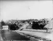 Kelvin Grove Road State School opened in 1875. In 1887, it was split into Kelvin Grove Boys State School and Kelvin Grove Girls and Infants State School. On 31 January 1950, there was a merger creating Kelvin Grove State School for the older boys and girls and Kelvin Grove Infants State School for the younger boys and girls. In 1961 the Infants School was absorbed back into Kelvin Grove State School.[6] Kelvin Grove State School was on the block surrounded by School Street, Tank Street, Victoria Park Road, and L'Estrange Terrace (27°27′02″S 153°00′42″E / 27.4505°S 153.0116°E / -27.4505; 153.0116 (Kelvin Grove State School (former))), while the girls school and the infants school were on a "extension" triangular site on the eastern corner of L'Estrange Terrace and Victoria Park Road (27°26′59″S 153°00′46″E / 27.4496°S 153.0128°E / -27.4496; 153.0128 (Kelvin Grove State High School (former))), later part of the Kelvin Grove State High School.[7][8] In January 2002, Kelvin Grove State School and Kelvin Grove State High School merged to become Kelvin Grove State College.[6][9]