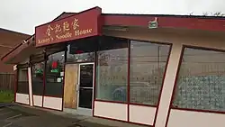 The Chinese restaurant Kenny's Noodle House operates from a small pink bungalow on Powell Boulevard, near 82nd Avenue in southeast Portland's Powellhurst-Gilbert neighborhood. The menu has included congee, Hong Kong noodles, wonton soup, Chinese broccoli with oyster sauce, and Chinese doughnuts (youtiao).[1][2] Various noodle soups also include bok choy and pork. Dumplings and vegetables are also on the menu.[3]