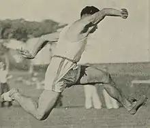 Togami competing in the triple jump at the New Zealand track and field championships in 1937