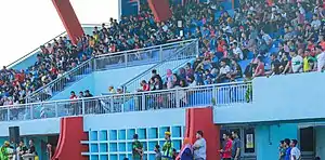 Kerteh FC fans at the Mak Chilli Stadium during a match against Northern Lions FC in the 2020 Malaysia FA Cup preliminary round.